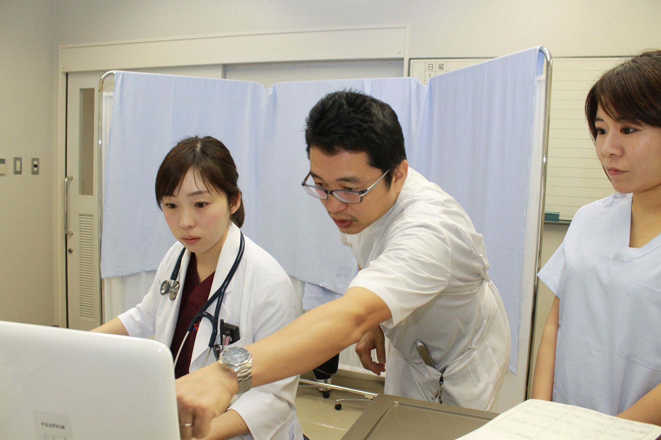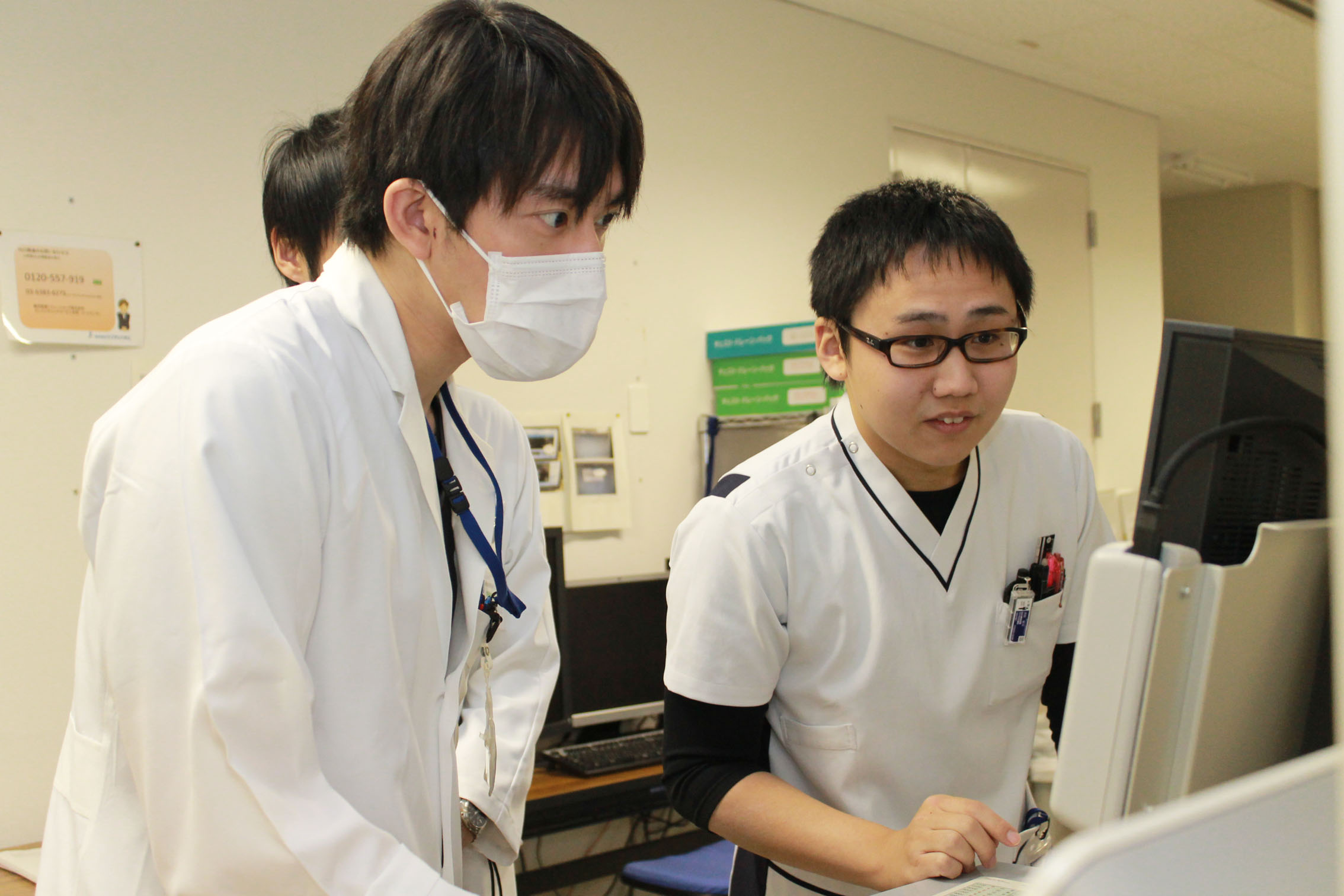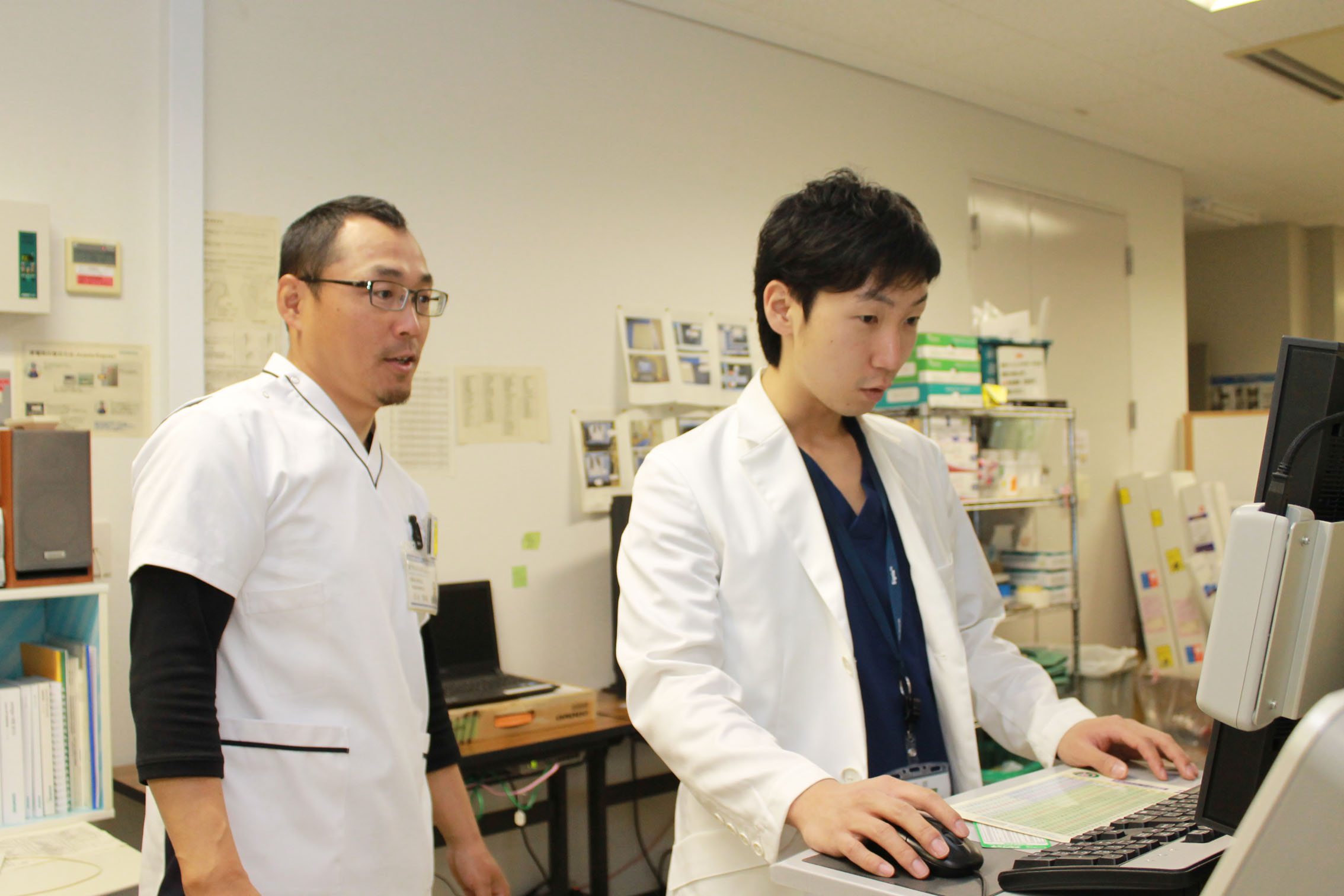 G・Wが終わり今日から1週間が始まりました☆研修医の先生方も連休を長崎近郊で過ごし元気に出勤されてます!大野先生と上井先生の放射線科実習の様子です。実際にレントゲンを撮ることで技師さんが気をつけていることや、オーダーを入れる際に気をつけることが分かりました。また感謝の気持ちも出てきたそうです☆