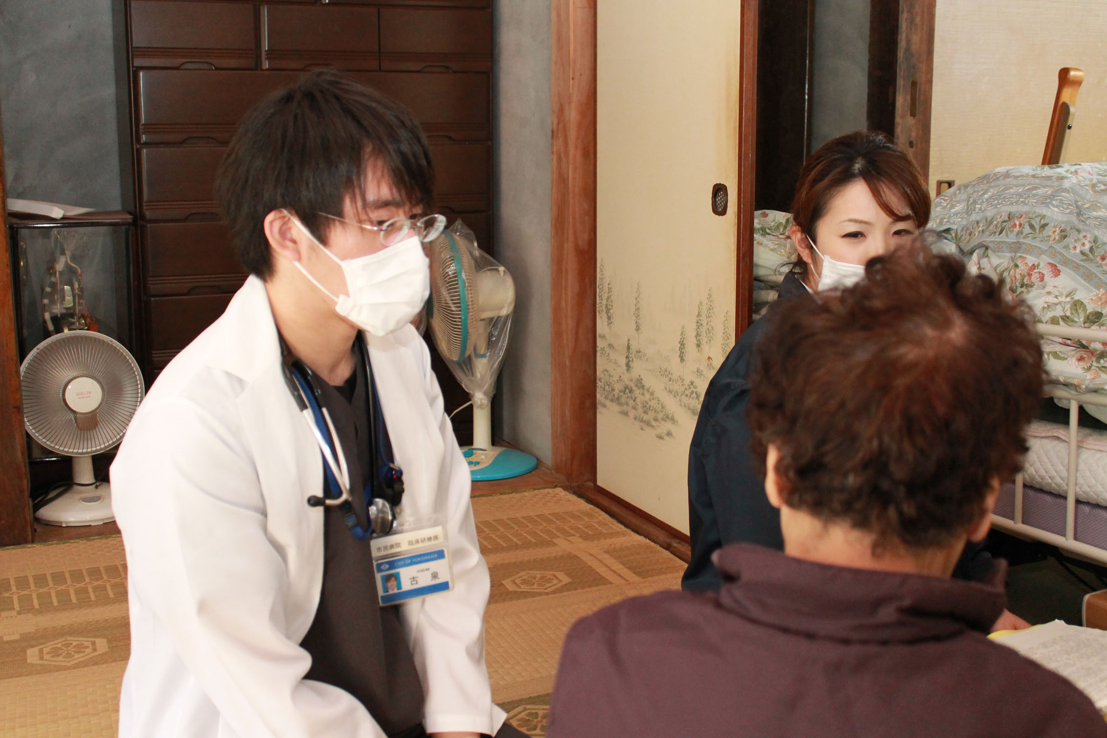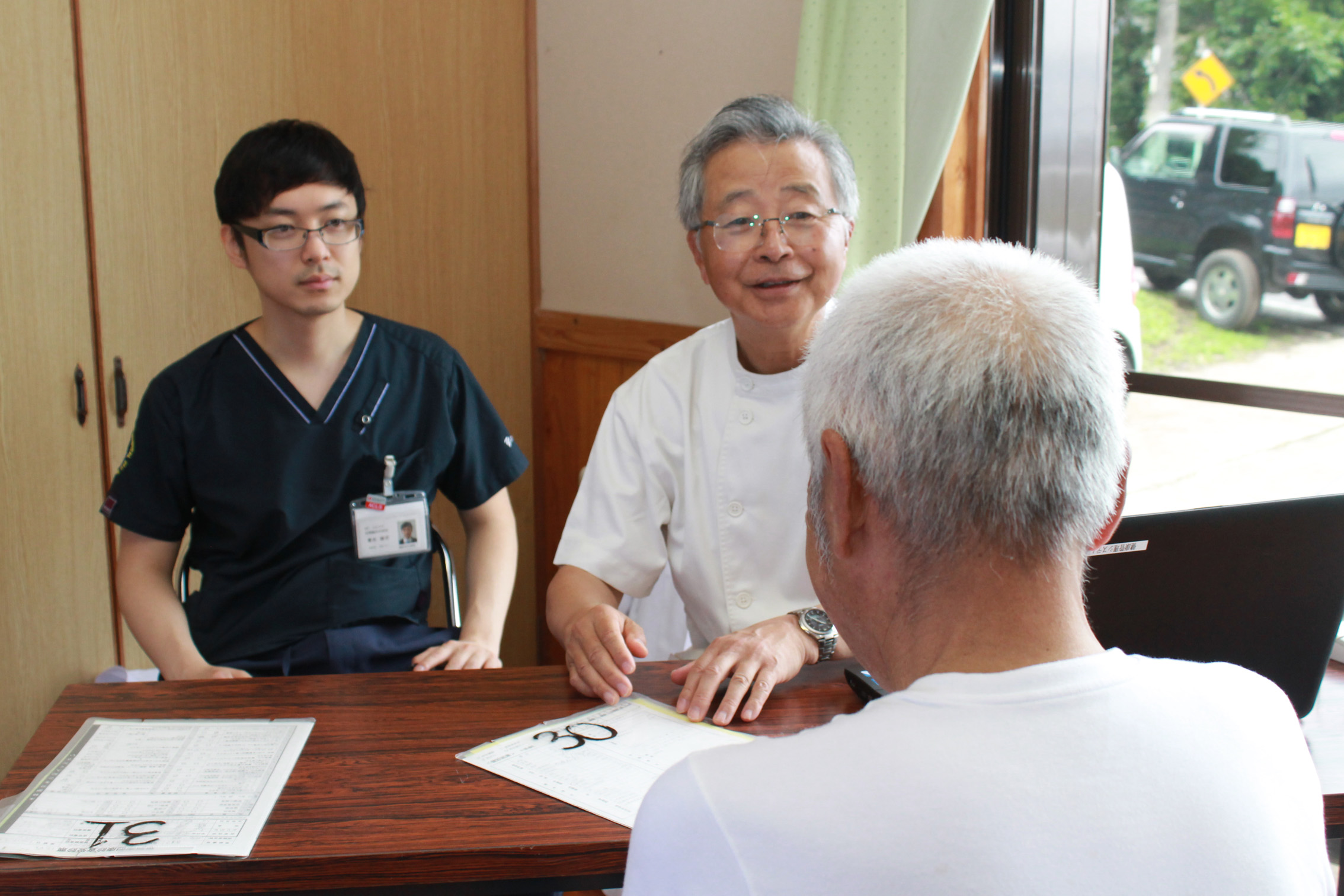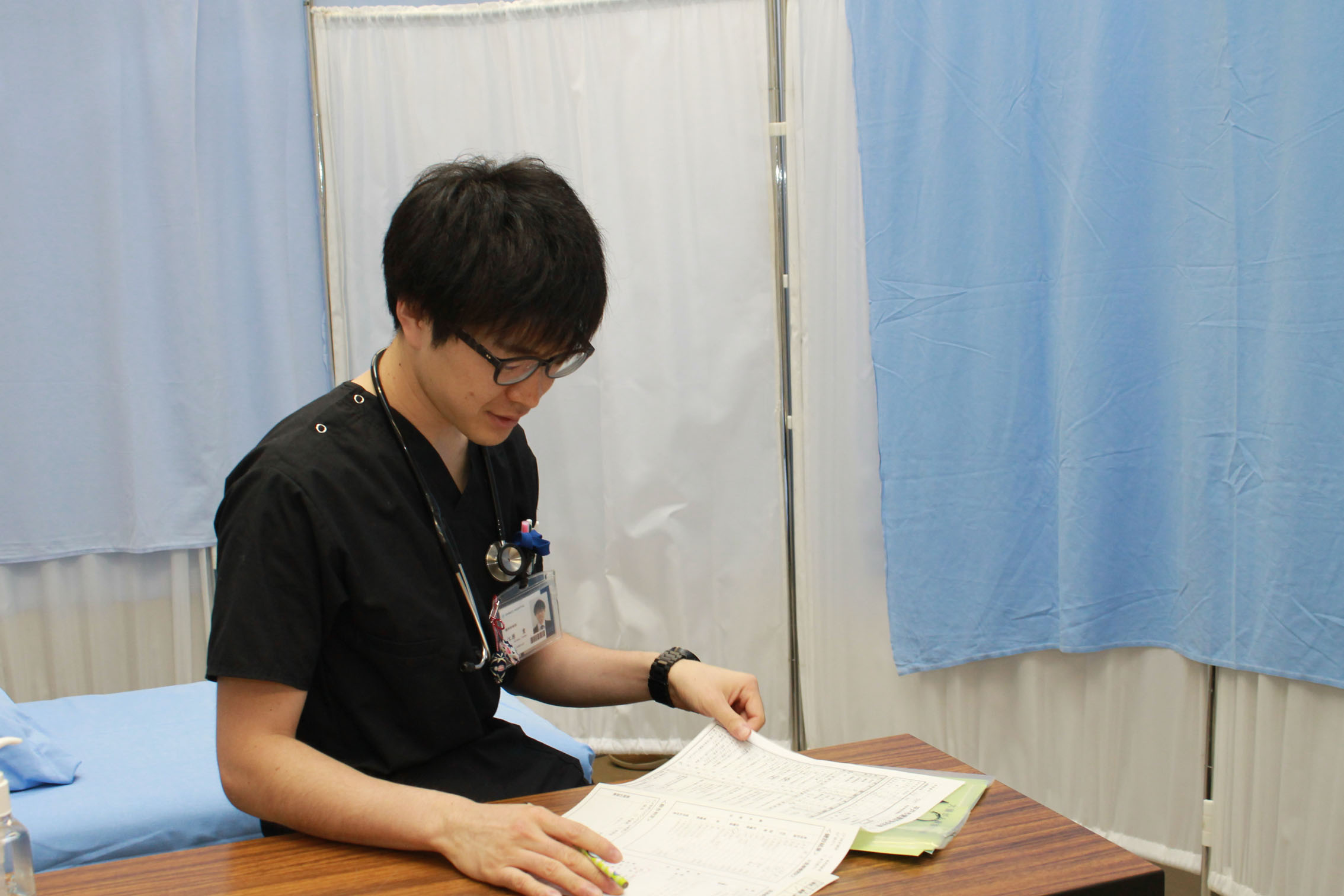研修医の先生方、交代で診察・問診と手際よくされています。古泉先生が、「よかですか?」「食べりますか?」と平戸弁を交えて優しく話しかけると患者さんも安心した様子で答えていました。