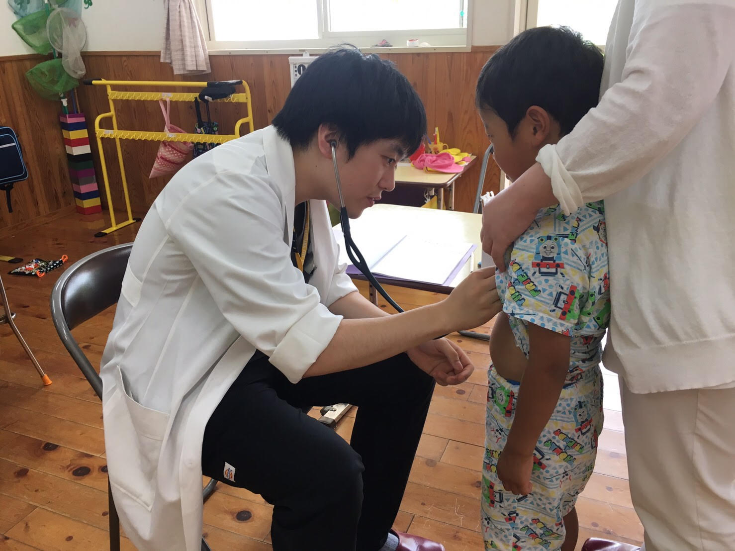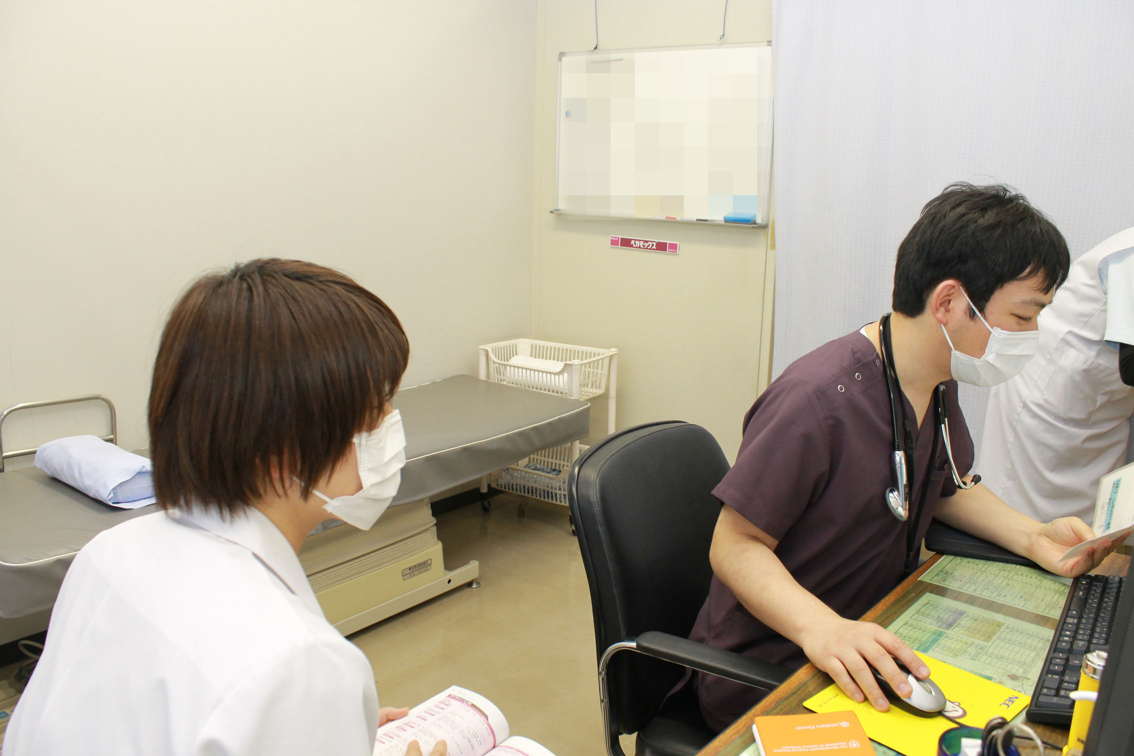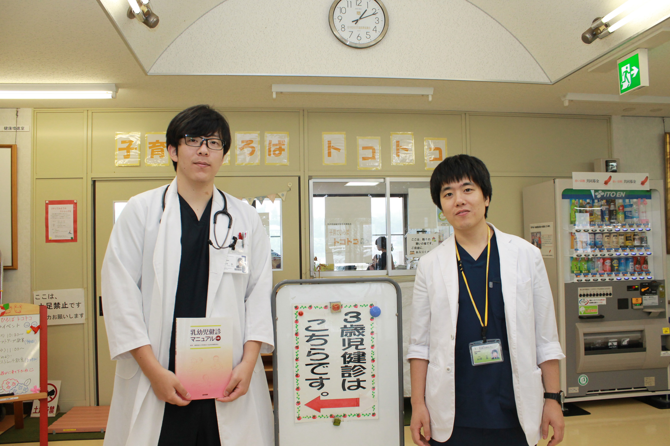 今日は保健センターにおいて3歳児健診が行われました。研修医の先生方は柿添先生にご指導いただきながら診察を担当しました。