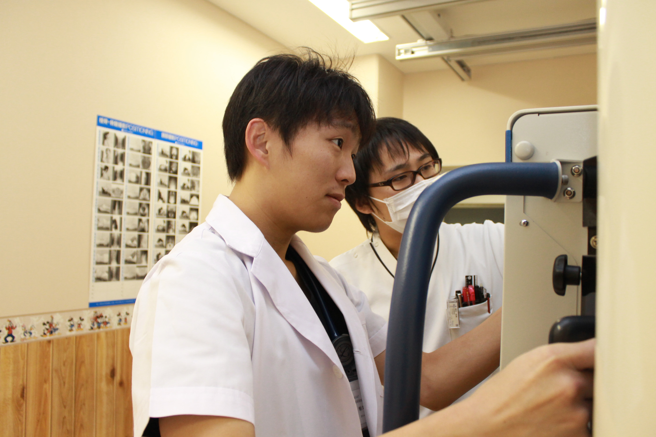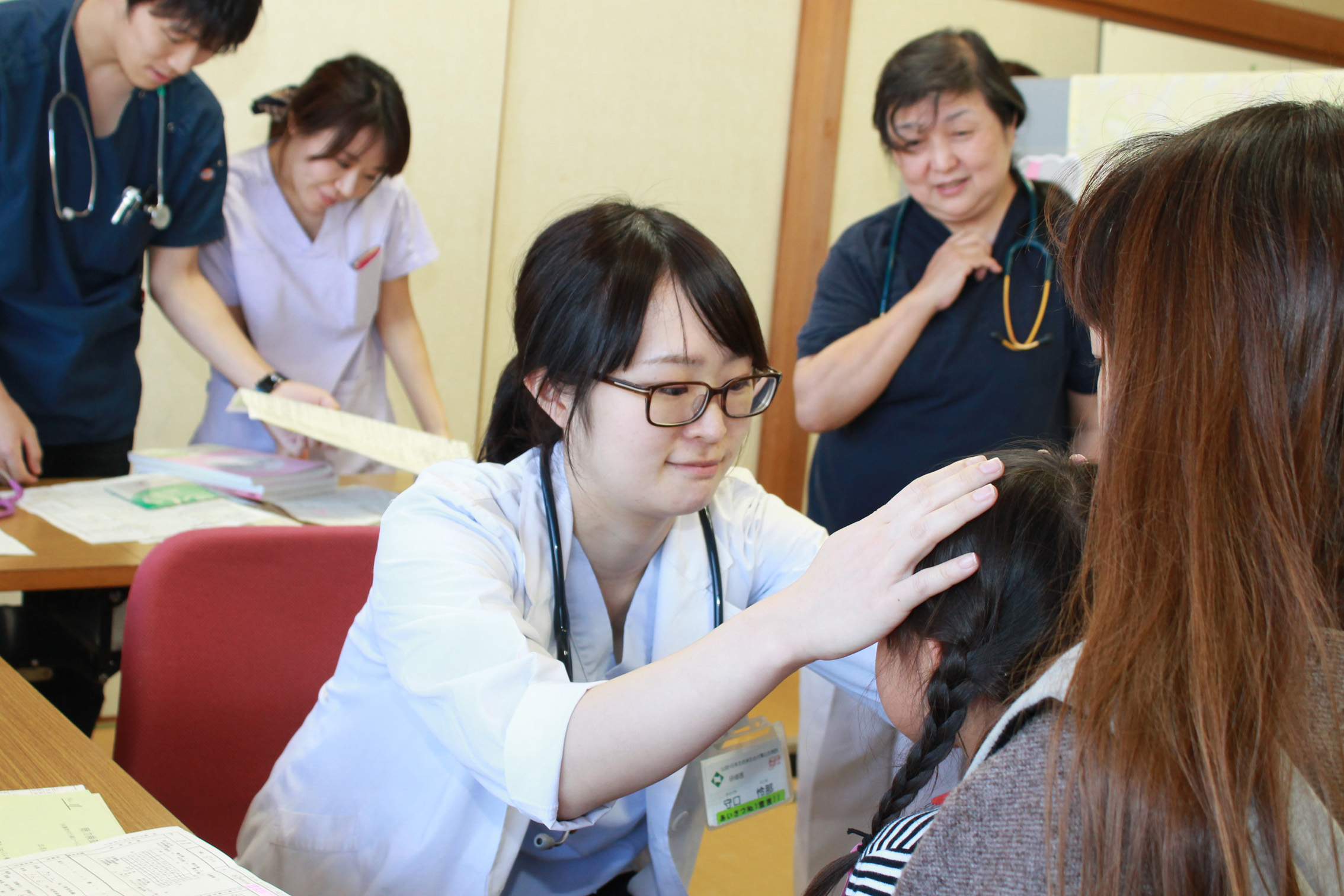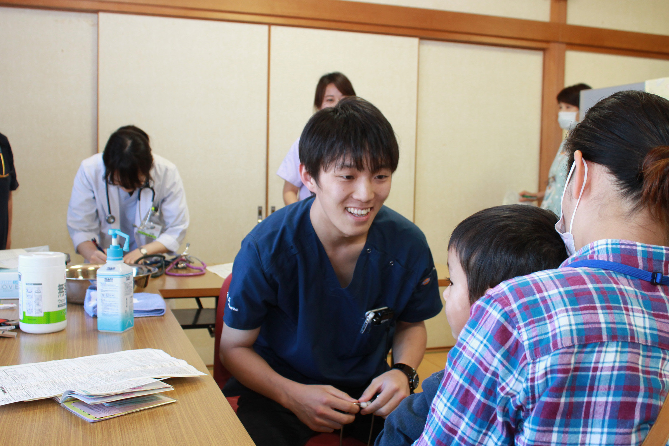 今日は保健センターにおいて3歳児健診が行われました。研修医の先生方は柿添先生にご指導いただきながら診察を担当しました。