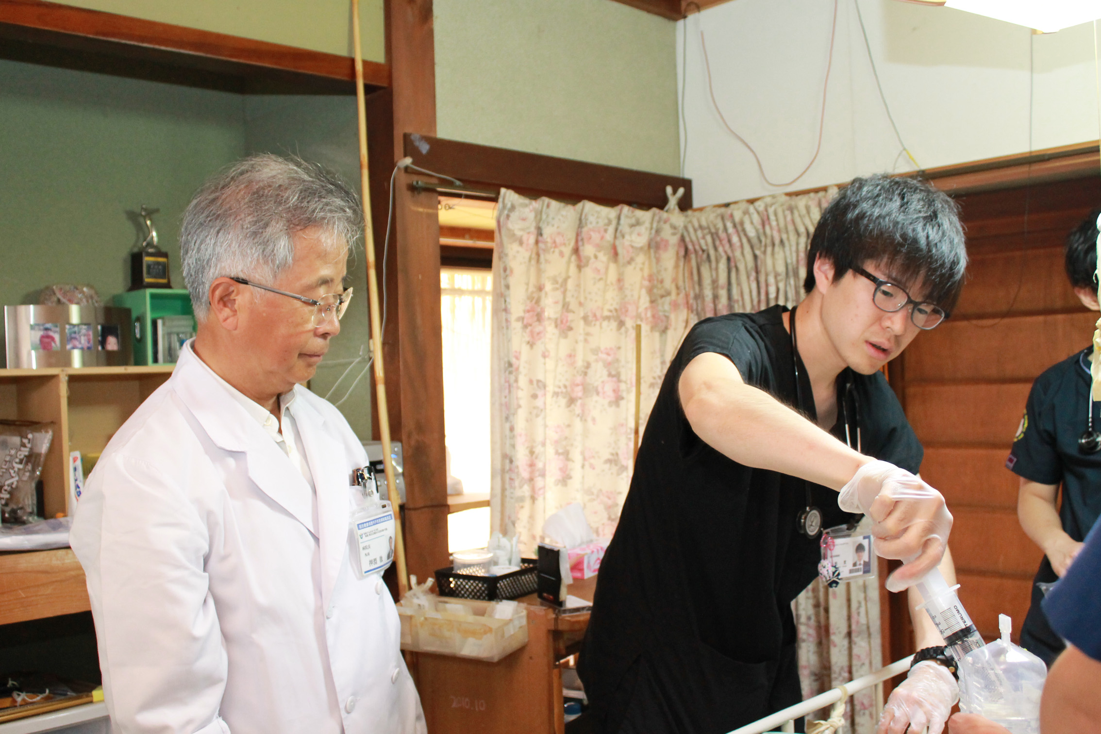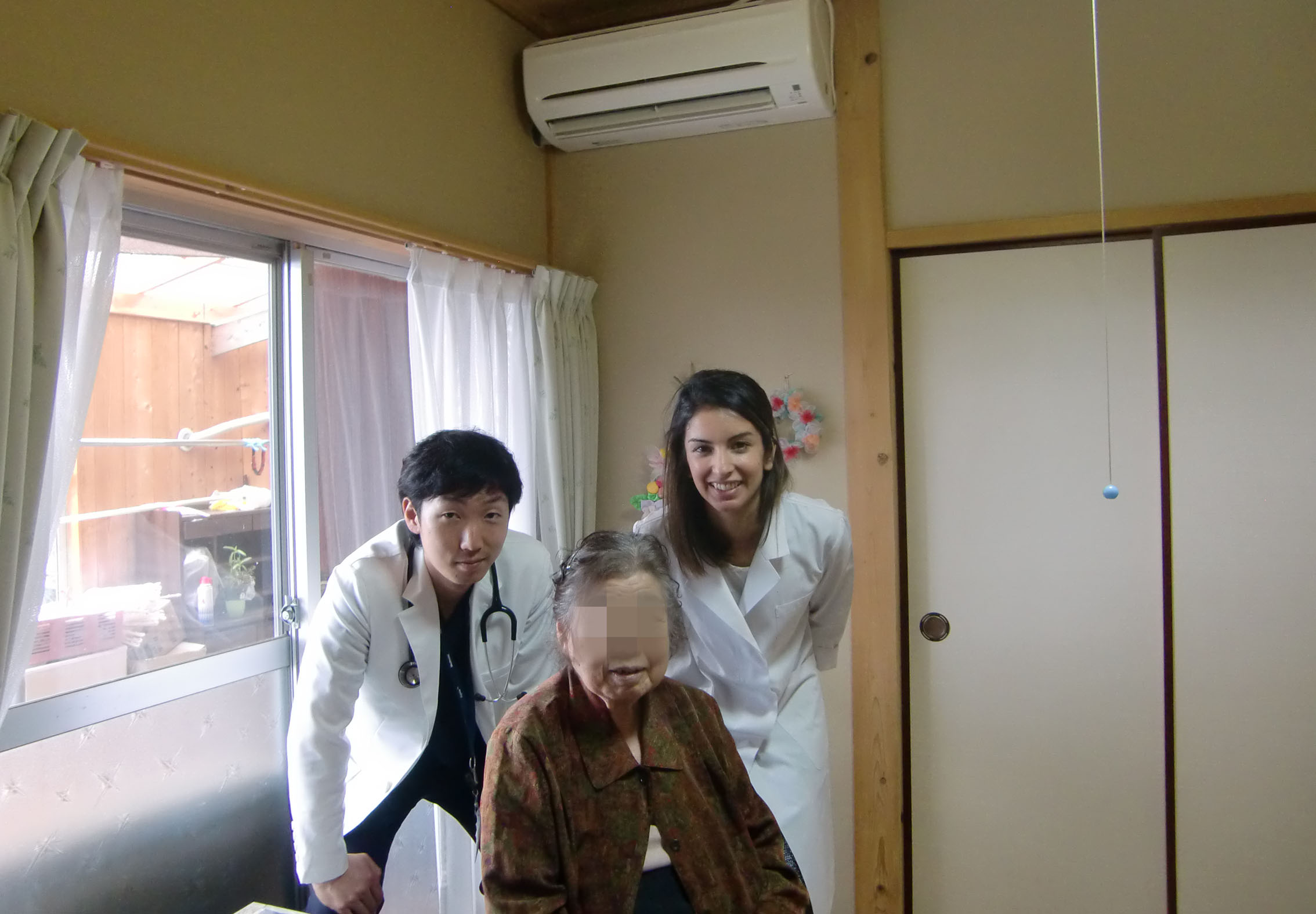 診療所では羽田野先生に普段の診療や施設の案内、そして縫合も教えていただきました。訪問診療ではお元気な100歳の方もおられたそうです。