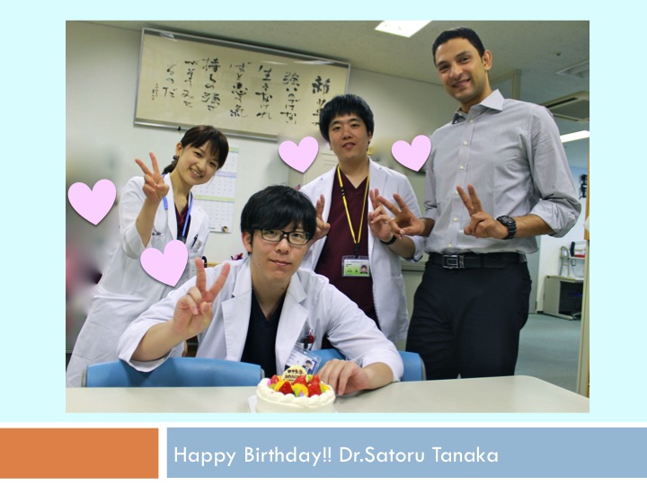 そして、本日4月21日は中桶先生のお誕生日です。いつもお世話になっている感謝の気持ちを込めて、研修医の先生方とお祝いをしました☆ちなみに、中桶先生は今月来られている先生方と同じ未年で「未年会」という名が発足しました(*^^*)