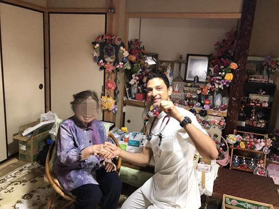 お宅に伺うと、患者さんはとても笑顔になり喜んでいました。中桶先生との会話に更に嬉しそうでした。