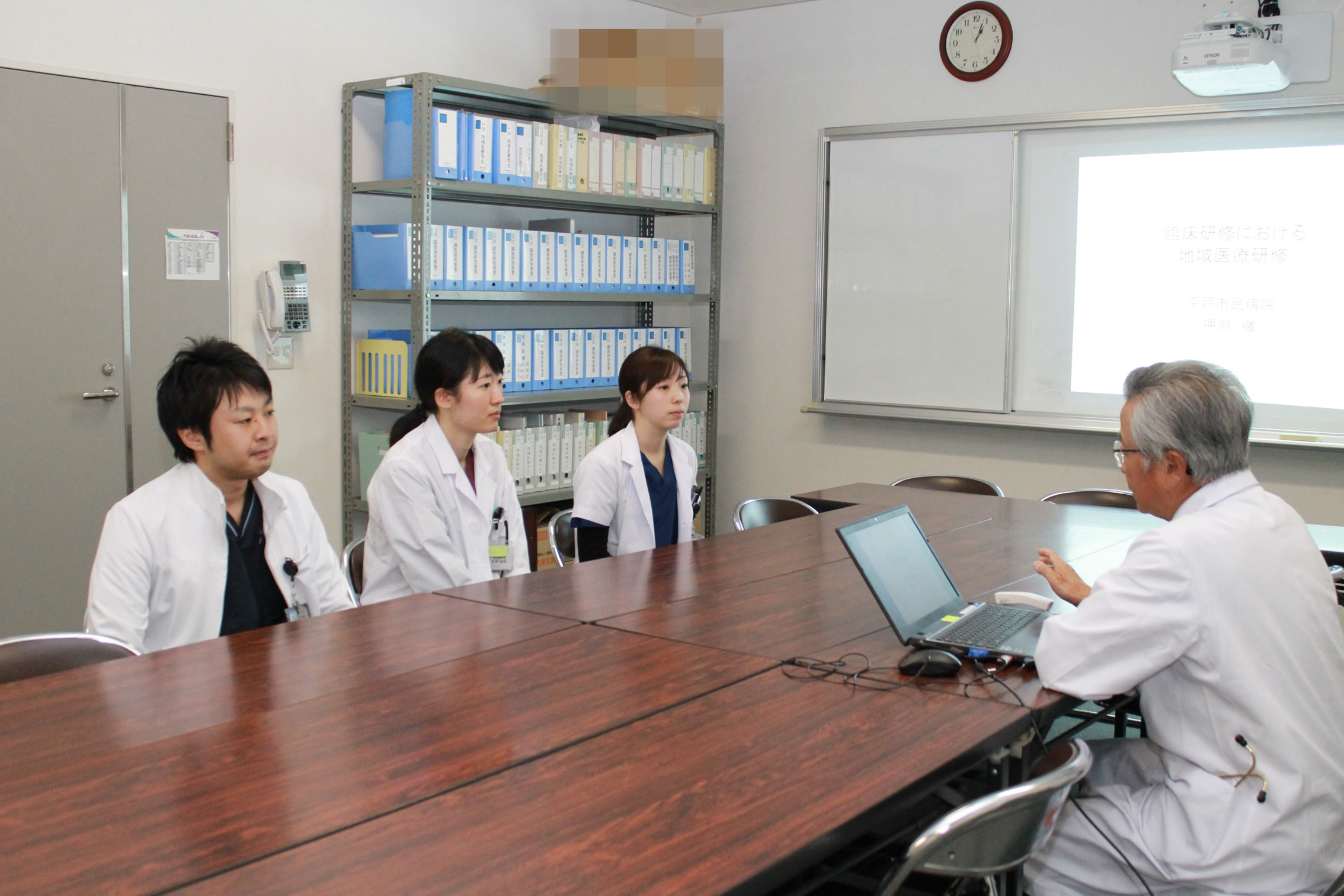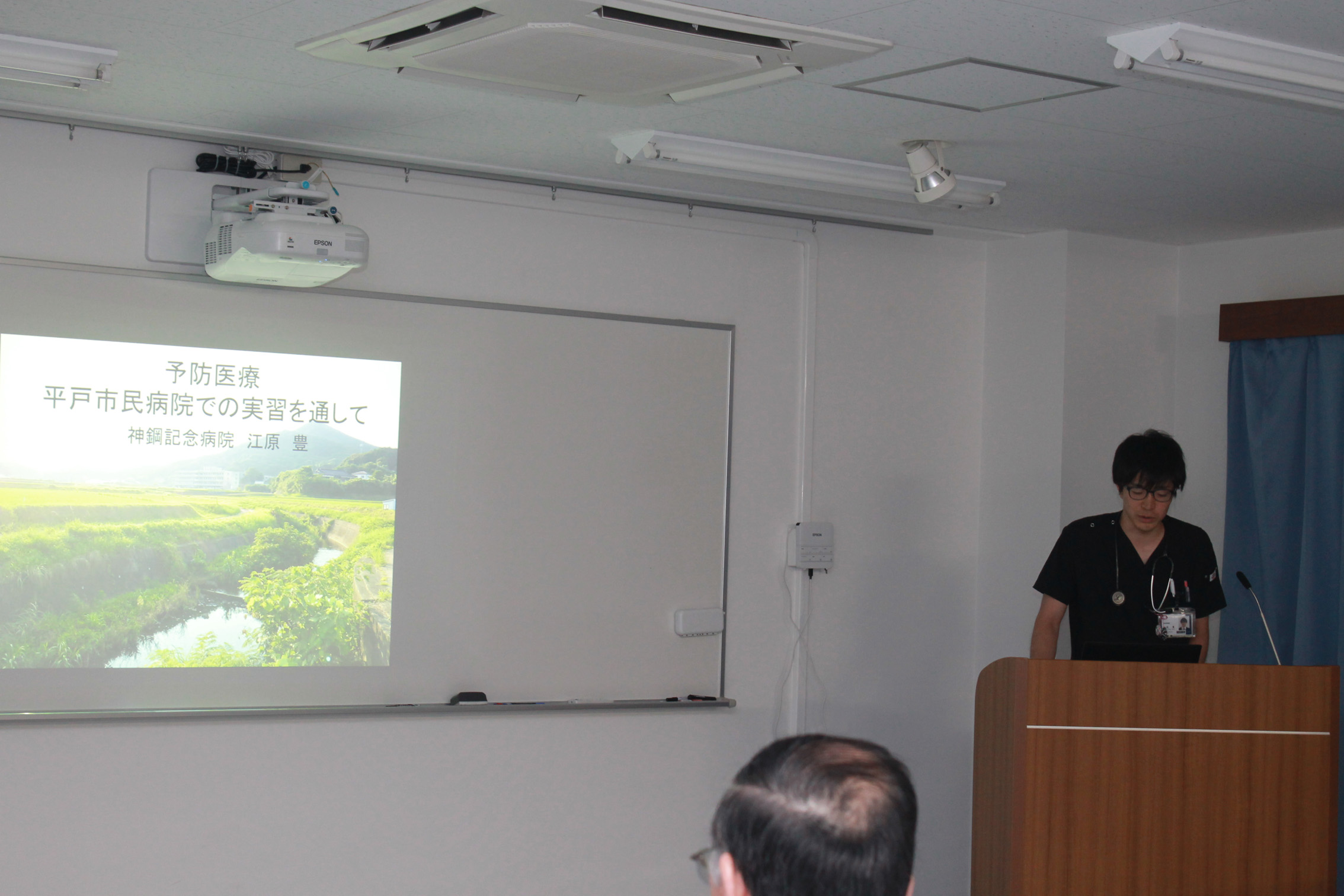 先週末をもって河岡先生、中林先生、堀先生の地域医療研修が終了しました。実習発表会では今年度よりこちらで診た症例を発表します。それぞれに診られた症例、そして地域包括医療ケアを学べたことを話されると先生方方からの質問と時には笑いも飛び交いました。こちらで学んだことをこれからに活かしたり、また戻ってきますと言葉を遺して帰られました。(忘れずにいてほしいですね☆)