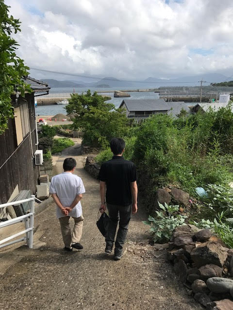 向原先生と三好先生は大島へ離島研修に行きました。その模様を今回も写真におさめてきてくださいました☆往路のフェリーでは、出張からお帰りだった大島診療所の関野先生と一緒になり、移動の時より島のことなど教えていただきました。