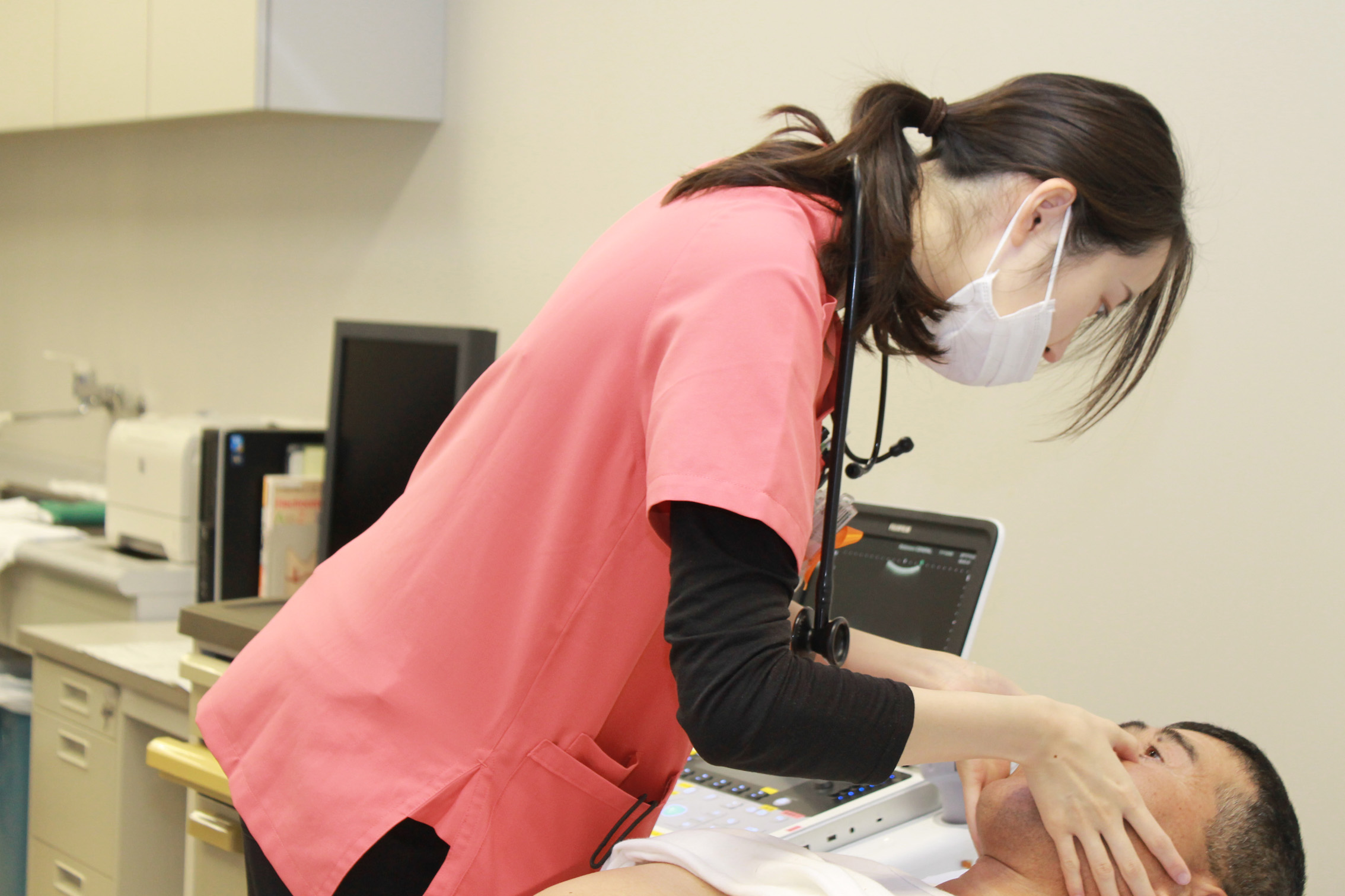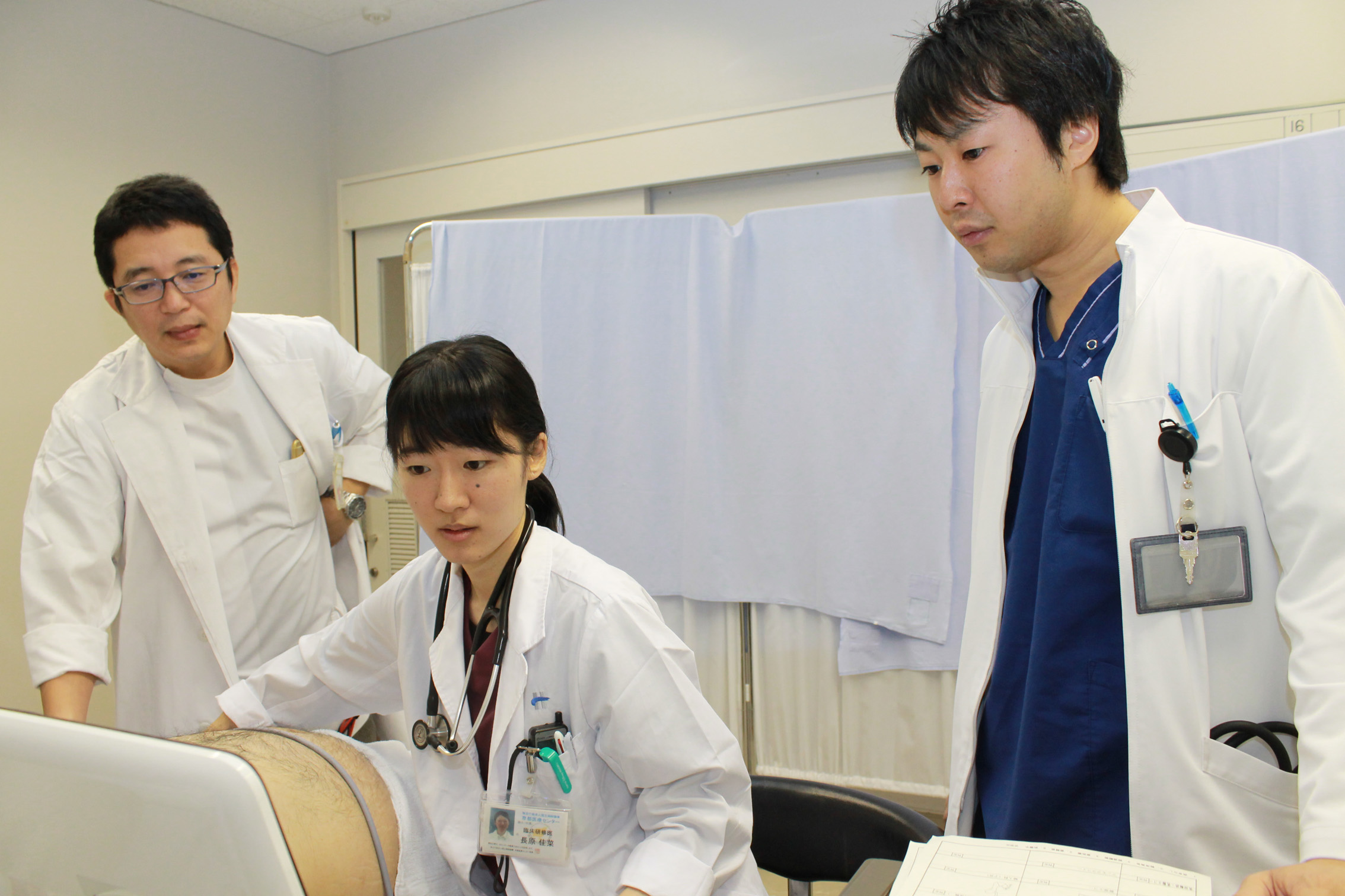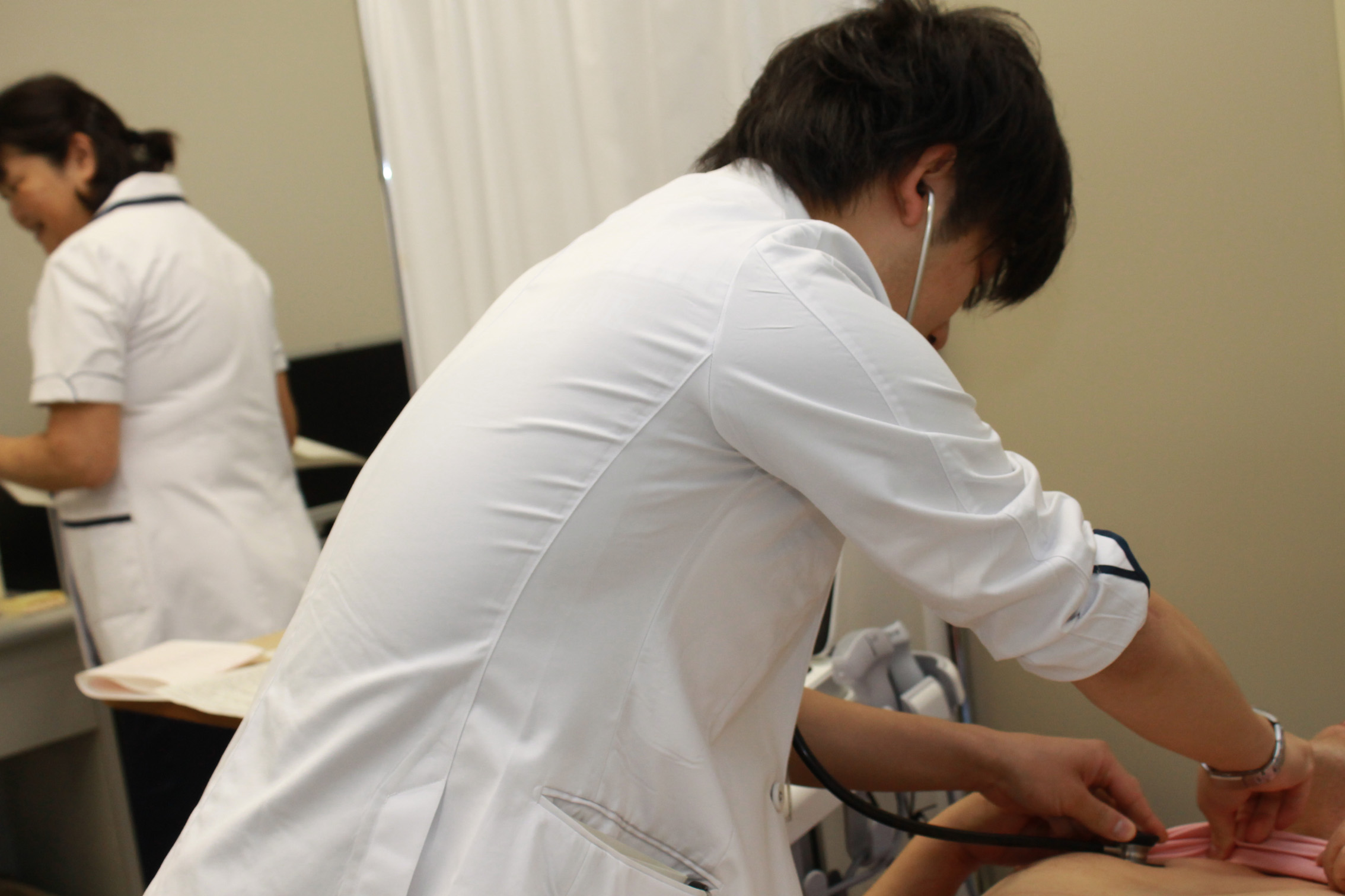 昨日、今日とサン・ケア平戸において中南部地区に勤務する市職員を対象にした健診が行われ、研修医の先生方も取り組まれました。3名で二手に分かれて、診察とエコー検査を半日づつ担当されました。