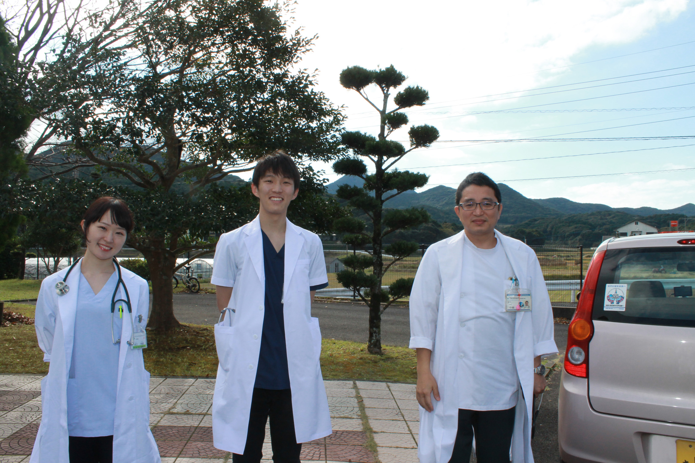 2週間という短い期間に、牛に襲われた患者さんを診られたり、イノシシに遭遇するなど地域特有のものに出会い、外来・救急、当直、病棟、多職種の人たちとの実習、離島研修など日々、意欲的に元気に取り組まれていました。