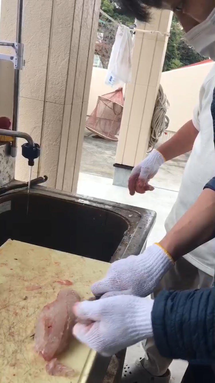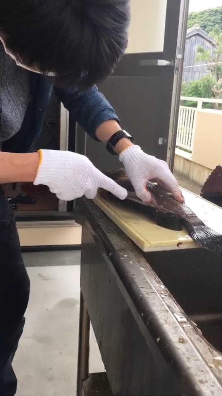 診療所に到着すると、羽田野先生が朝釣ってきたばかりのクエが2匹も台所に用意されていました☆さばき方を羽田野先生に教わり、自分で作ったクエのお刺身をお昼にいただいてきました。新鮮なクエはまた一段と美味しかったそうです!!