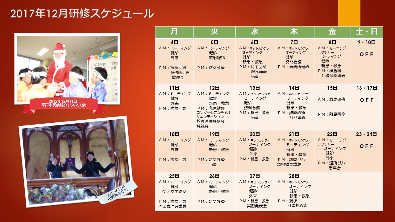 本日をもって、2017年12月の地域医療研修が終了しました。押淵院長との訪問診療には長原先生が行かれご教授いただきました。